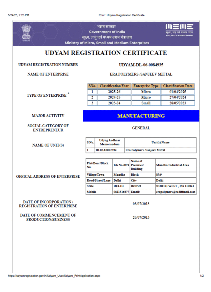 Copyright © 2025 Era Polymers. All Rights Reserved.